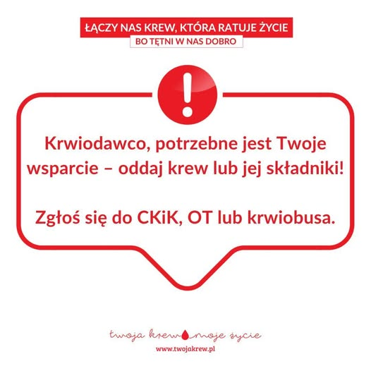 Zgłoś się do CKiK, OT lub krwiobusa
