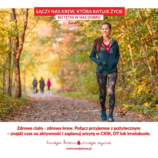 Aktywność na świeżym powietrzu daje więcej niż myślisz Poranna joga w parku, weekendowa wycieczka w góry, czy spokojny spacer po lesie – każda forma ruchu wzmacnia ciało i umysł. Zdrowe ciało to także zdrowa krew, którą możesz się podzielić z tymi, którzy jej potrzebują. W tym tygodniu połącz przyjemne z pożytecznym – znajdź czas na